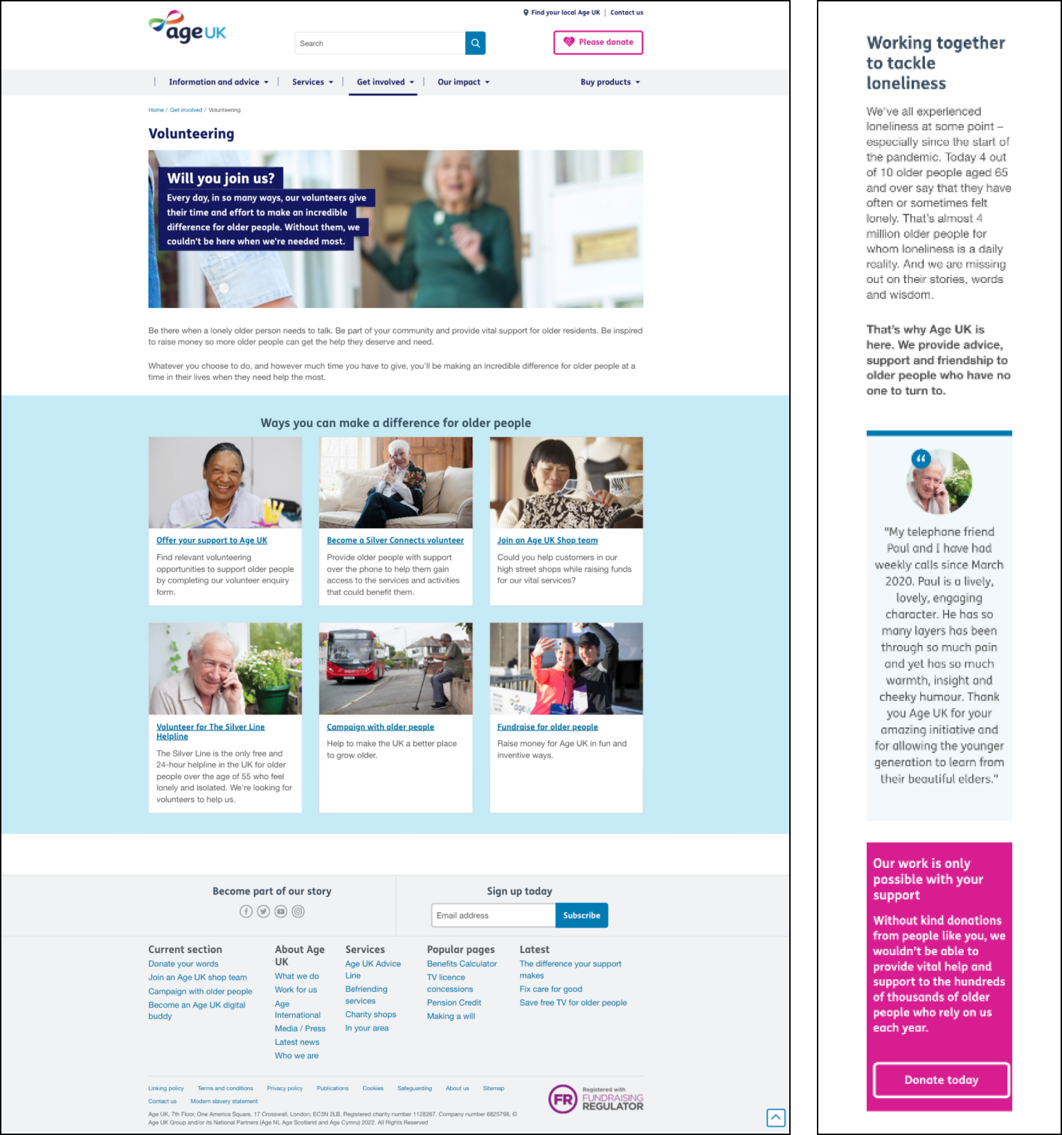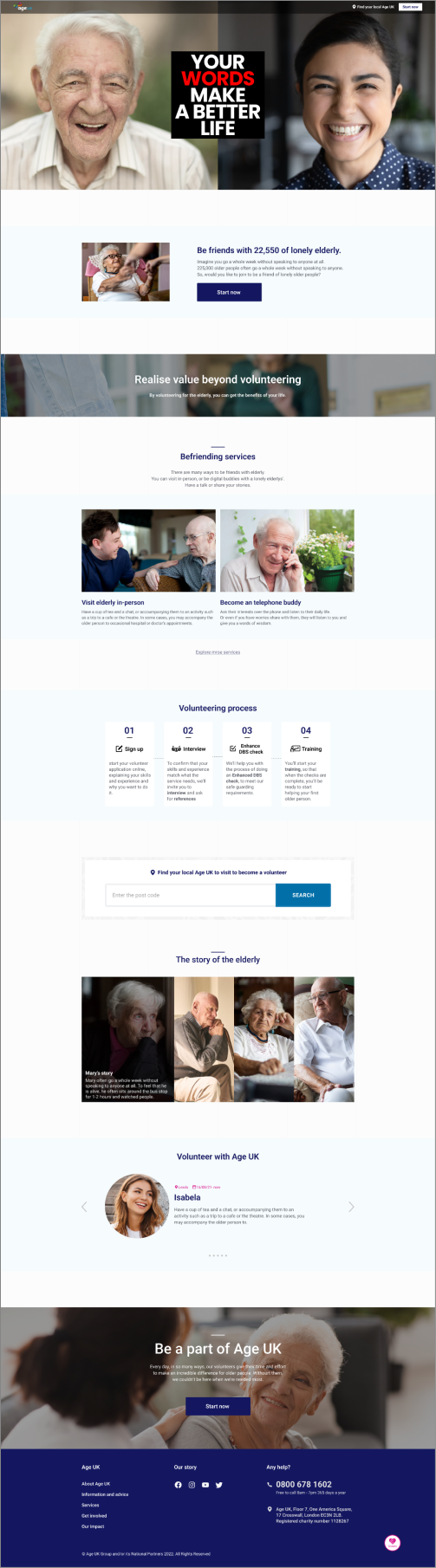 [elementor-element k="ed0b65cca22b28cad8dccc9d3220cac0" data="eyJpZCI6ImEwYjJkZjgiLCJlbFR5cGUiOiJ3aWRnZXQiLCJzZXR0aW5ncyI6eyJoZWFkaW5nX3RpdGxlIjoiUHJvamVjdCBvdmVydmlldyIsInNob3dfc3ViX2hlYWRpbmciOiIiLCJoZWFkaW5nX2Rlc2NyaXB0aW9uIjoiSW5kaXZpZHVhbCBwcm9qZWN0IiwiaGVhZGluZ19saW5lX3RleHQiOiJTZXBhcmF0b3IgVGV4dCIsImhlYWRpbmdfbWFyZ2luIjp7InVuaXQiOiJweCIsInRvcCI6IjE3IiwicmlnaHQiOiIwIiwiYm90dG9tIjoiMCIsImxlZnQiOiIwIiwiaXNMaW5rZWQiOmZhbHNlfSwiZGlzcGxheV9jb25kaXRpb25fbGlzdCI6W3siZGlzcGxheV9jb25kaXRpb25fbG9naW5fc3RhdHVzIjoic3Vic2NyaWJlciIsIl9pZCI6ImE3NTdjYTUifV0sIl9fZ2xvYmFsc19fIjp7ImhlYWRpbmdfdHlwb2dyYXBoeV90eXBvZ3JhcGh5IjoiZ2xvYmFsc1wvdHlwb2dyYXBoeT9pZD1wcmltYXJ5IiwiaGVhZGluZ19kZXNjX2NvbG9yIjoiZ2xvYmFsc1wvY29sb3JzP2lkPXNlY29uZGFyeSIsImhlYWRpbmdfZGVzY190eXBvZ3JhcGh5X3R5cG9ncmFwaHkiOiJnbG9iYWxzXC90eXBvZ3JhcGh5P2lkPWFjY2VudCIsImhlYWRpbmdfbGluZV9jb2xvciI6Imdsb2JhbHNcL2NvbG9ycz9pZD03YmUyZWY1In0sImhlYWRpbmdfbWFyZ2luX21vYmlsZSI6eyJ1bml0IjoicHgiLCJ0b3AiOiI2IiwicmlnaHQiOiIwIiwiYm90dG9tIjoiMCIsImxlZnQiOiIwIiwiaXNMaW5rZWQiOmZhbHNlfSwiaGVhZGluZ19kZXNjX2NvbG9yIjoiIzQwNDA0MCIsImhlYWRpbmdfZGVzY190eXBvZ3JhcGh5X3R5cG9ncmFwaHkiOiJjdXN0b20iLCJoZWFkaW5nX2Rlc2NfdHlwb2dyYXBoeV9mb250X2ZhbWlseSI6IkxhdG8iLCJoZWFkaW5nX2Rlc2NfdHlwb2dyYXBoeV9mb250X3NpemUiOnsidW5pdCI6InB4Iiwic2l6ZSI6MTgsInNpemVzIjpbXX0sImhlYWRpbmdfZGVzY190eXBvZ3JhcGh5X2ZvbnRfc2l6ZV9tb2JpbGUiOnsidW5pdCI6InB4Iiwic2l6ZSI6MTQsInNpemVzIjpbXX0sImhlYWRpbmdfZGVzY190eXBvZ3JhcGh5X2ZvbnRfd2VpZ2h0Ijoibm9ybWFsIiwiaGVhZGluZ19kZXNjX3R5cG9ncmFwaHlfbGluZV9oZWlnaHQiOnsidW5pdCI6ImVtIiwic2l6ZSI6MS4zOTk5OTk5OTk5OTk5OTk5MTExODIxNTgwMjk5ODc0NzY3NjYxMDk0NjY1NTI3MzQzNzUsInNpemVzIjpbXX0sImhlYWRpbmdfZGVzY19tYXJnaW4iOnsidW5pdCI6InB4IiwidG9wIjoiMCIsInJpZ2h0IjoiMCIsImJvdHRvbSI6IjAiLCJsZWZ0IjoiMCIsImlzTGlua2VkIjpmYWxzZX0sInNob3dfZGVzY3JpcHRpb24iOiIiLCJzaG93X2JnX3RleHQiOiIiLCJoZWFkaW5nX3NlcGFyYXRvcl9zdHlsZSI6ImxpbmUiLCJoZWFkaW5nX3NlcGFyYXRvcl9wb3NpdGlvbiI6InRvcCIsImhlYWRpbmdfbGluZV90aGlja25lc3MiOnsidW5pdCI6InB4Iiwic2l6ZSI6NCwic2l6ZXMiOltdfSwiaGVhZGluZ19saW5lX3dpZHRoIjp7InVuaXQiOiJweCIsInNpemUiOjU2LCJzaXplcyI6W119LCJoZWFkaW5nX2xpbmVfd2lkdGhfdGFibGV0Ijp7InVuaXQiOiJweCIsInNpemUiOiIiLCJzaXplcyI6W119LCJoZWFkaW5nX2xpbmVfd2lkdGhfbW9iaWxlIjp7InVuaXQiOiJweCIsInNpemUiOiIiLCJzaXplcyI6W119fSwiZWxlbWVudHMiOltdLCJ3aWRnZXRUeXBlIjoidWFlbC1hZHZhbmNlZC1oZWFkaW5nIn0="][elementor-element k="ed0b65cca22b28cad8dccc9d3220cac0" data="eyJpZCI6IjYxYzBjNjEiLCJlbFR5cGUiOiJ3aWRnZXQiLCJzZXR0aW5ncyI6eyJoZWFkaW5nX3RpdGxlIjoiUHJvamVjdCBzdW1tYXJ5Iiwic2hvd19zdWJfaGVhZGluZyI6IiIsImhlYWRpbmdfZGVzY3JpcHRpb24iOiJUaHJvdWdoIHRoZSBsYXN0IHN0dWR5LCBJIGRlc3BlcmF0ZWx5IGZlbHQgYSB0b3VjaCBmb3IgdGhlIGVsZGVybHkuIEluIG9yZGVyIHRvIGRvIHNvLCBJIHRob3VnaHQgcGVvcGxlJ3MgYWNjZXNzIHRvIGhlbHAgc2hvdWxkIGJlIGVhc3kuIFNvLCBJIGRlc2lnbmVkIEFnZSBVSydzIHNlcnZpY2VzIGxhbmRpbmcgcGFnZSBmb3IgdGhlIGVsZGVybHkgYmFzZWQgb24gdGhlIEFJREEgbW9kZWwsIGEgZXhwbGFuYXRpb24gb2YgdGhlIHNlcnZpY2UgYW5kIHRoZSBuZWVkcyBmb3Igc2VydmljZXMgdG8gbWFrZSBpdCBjb252ZW5pZW50IGZvciB0aG9zZSB3aG8gd2lsbCBzdXBwb3J0IGl0LiIsImhlYWRpbmdfbGluZV90ZXh0IjoiU2VwYXJhdG9yIFRleHQiLCJoZWFkaW5nX3RhZyI6ImgzIiwiaGVhZGluZ19tYXJnaW4iOnsidW5pdCI6InB4IiwidG9wIjoiMCIsInJpZ2h0IjoiMCIsImJvdHRvbSI6IjE0IiwibGVmdCI6IjAiLCJpc0xpbmtlZCI6ZmFsc2V9LCJkaXNwbGF5X2NvbmRpdGlvbl9saXN0IjpbeyJkaXNwbGF5X2NvbmRpdGlvbl9sb2dpbl9zdGF0dXMiOiJzdWJzY3JpYmVyIiwiX2lkIjoiYTc1N2NhNSJ9XSwiX19nbG9iYWxzX18iOnsiaGVhZGluZ190eXBvZ3JhcGh5X3R5cG9ncmFwaHkiOiJnbG9iYWxzXC90eXBvZ3JhcGh5P2lkPXNlY29uZGFyeSIsImhlYWRpbmdfZGVzY19jb2xvciI6Imdsb2JhbHNcL2NvbG9ycz9pZD1zZWNvbmRhcnkiLCJoZWFkaW5nX2Rlc2NfdHlwb2dyYXBoeV90eXBvZ3JhcGh5IjoiZ2xvYmFsc1wvdHlwb2dyYXBoeT9pZD0yNDU2N2NkIn0sImhlYWRpbmdfbWFyZ2luX21vYmlsZSI6eyJ1bml0IjoicHgiLCJ0b3AiOiIwIiwicmlnaHQiOiIwIiwiYm90dG9tIjoiMTYiLCJsZWZ0IjoiMCIsImlzTGlua2VkIjpmYWxzZX0sImhlYWRpbmdfZGVzY19jb2xvciI6IiM0MDQwNDAiLCJoZWFkaW5nX2Rlc2NfdHlwb2dyYXBoeV90eXBvZ3JhcGh5IjoiY3VzdG9tIiwiaGVhZGluZ19kZXNjX3R5cG9ncmFwaHlfZm9udF9mYW1pbHkiOiJMYXRvIiwiaGVhZGluZ19kZXNjX3R5cG9ncmFwaHlfZm9udF9zaXplIjp7InVuaXQiOiJweCIsInNpemUiOjE4LCJzaXplcyI6W119LCJoZWFkaW5nX2Rlc2NfdHlwb2dyYXBoeV9mb250X3NpemVfbW9iaWxlIjp7InVuaXQiOiJweCIsInNpemUiOjIzLCJzaXplcyI6W119LCJoZWFkaW5nX2Rlc2NfdHlwb2dyYXBoeV9mb250X3dlaWdodCI6Im5vcm1hbCIsImhlYWRpbmdfZGVzY190eXBvZ3JhcGh5X2xpbmVfaGVpZ2h0Ijp7InVuaXQiOiJlbSIsInNpemUiOjEuMzk5OTk5OTk5OTk5OTk5OTExMTgyMTU4MDI5OTg3NDc2NzY2MTA5NDY2NTUyNzM0Mzc1LCJzaXplcyI6W119LCJoZWFkaW5nX2Rlc2NfbWFyZ2luIjp7InVuaXQiOiJweCIsInRvcCI6IjAiLCJyaWdodCI6IjU5MCIsImJvdHRvbSI6IjAiLCJsZWZ0IjoiMCIsImlzTGlua2VkIjpmYWxzZX0sInNob3dfYmdfdGV4dCI6IiIsImhlYWRpbmdfZGVzY19tYXJnaW5fdGFibGV0Ijp7InVuaXQiOiJweCIsInRvcCI6IjAiLCJyaWdodCI6IjE2MCIsImJvdHRvbSI6IjAiLCJsZWZ0IjoiMCIsImlzTGlua2VkIjpmYWxzZX0sIl9tYXJnaW4iOnsidW5pdCI6InB4IiwidG9wIjoiMzciLCJyaWdodCI6IjAiLCJib3R0b20iOiIwIiwibGVmdCI6IjAiLCJpc0xpbmtlZCI6ZmFsc2V9LCJfbWFyZ2luX21vYmlsZSI6eyJ1bml0IjoicHgiLCJ0b3AiOiIzMiIsInJpZ2h0IjoiMCIsImJvdHRvbSI6IjAiLCJsZWZ0IjoiMCIsImlzTGlua2VkIjpmYWxzZX0sImhlYWRpbmdfZGVzY19tYXJnaW5fbW9iaWxlIjp7InVuaXQiOiJweCIsInRvcCI6IjAiLCJyaWdodCI6IjAiLCJib3R0b20iOiIwIiwibGVmdCI6IjAiLCJpc0xpbmtlZCI6ZmFsc2V9fSwiZWxlbWVudHMiOltdLCJ3aWRnZXRUeXBlIjoidWFlbC1hZHZhbmNlZC1oZWFkaW5nIn0="]